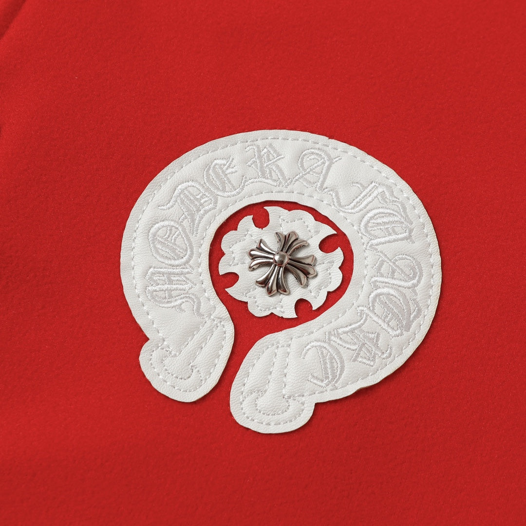 Chrome Hearts Red Cross Varsity Jacket - White Sleeve Gothic Street Baseball Coat D68